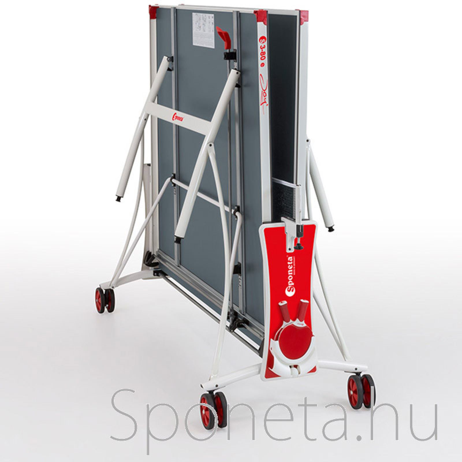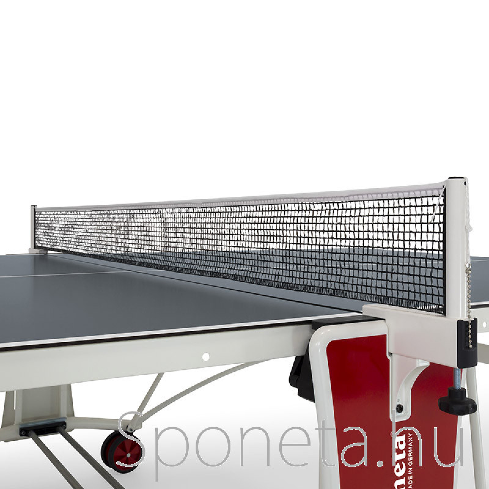 A pingpongasztal 1 db ütő- és labdatartót és 1 db Sponeta Primus I pingpongháló szettett is tartalmaz!